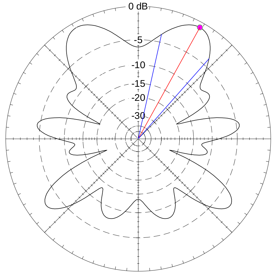 I was sort of surprised how well it worked on 40m, being barely an 1/8th of a wavelength above the ground at that frequency. All of my contacts more than 8000 miles away were on 40m, with one exception (which happened to be placed perfectly in one of the predicted gain lobes).