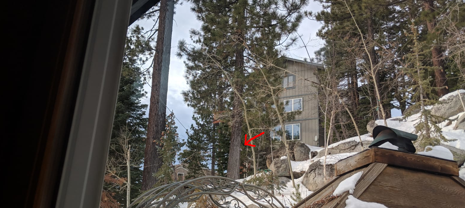 The antenna was fed with ~30ft of 450 Ohm ladder line, which ran down at a 45-degree angle north for 15ft and then just out of reach parallel to the ground into the shack, located under the center of the north leg. The ladder line ran through a knife switch (for grounding it when not in use) to a manual T-network antenna coupler, which had a built-in 1:1 current balun.